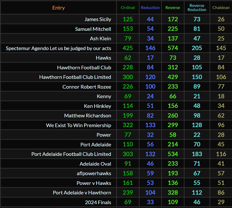 Adelaide does have many connections like Adelaide = 24 in the year 24. However, I see more connections to the Hawks and the chart is the main reason.