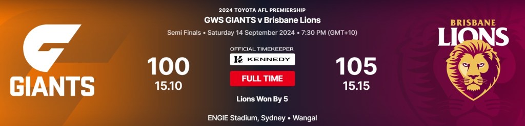 - My pick is for an amazing game with lots of twists and turns but somehow the Lions taking it out.