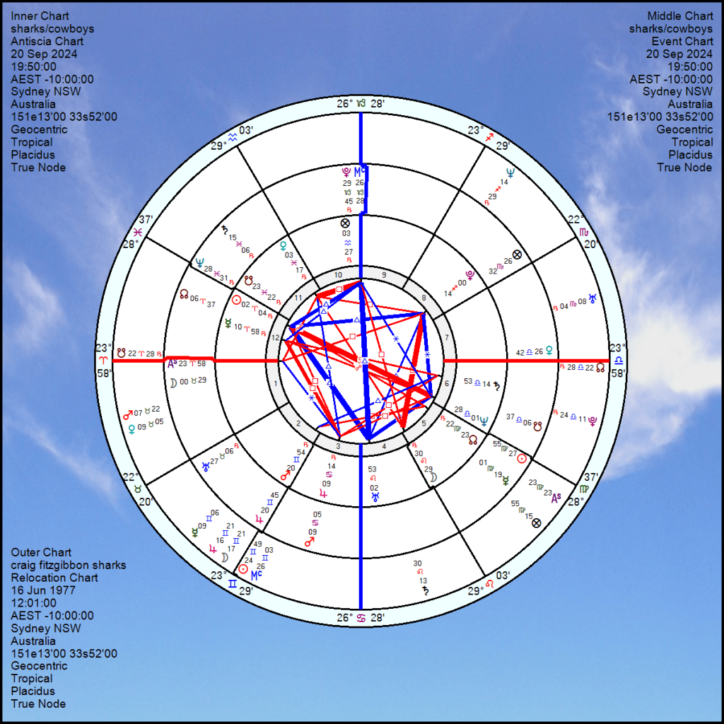 - Craig Fitzgibbon has his Sth Node conjunct the Asc Aires (Fav); his Nth Node conjunct the Desc (underdog)